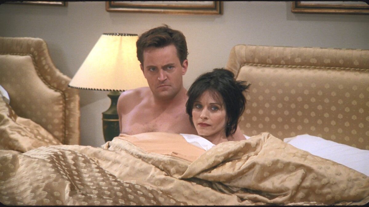 - Изначально романа между Чендлером и Моникой не предполагалось. Они должны были провести одну ночь вместе и дальше жить каждый своей жизнью. Но когда зрители в зале увидели их в кровати, то подняли овацию и не давали нормально доиграть сцену.